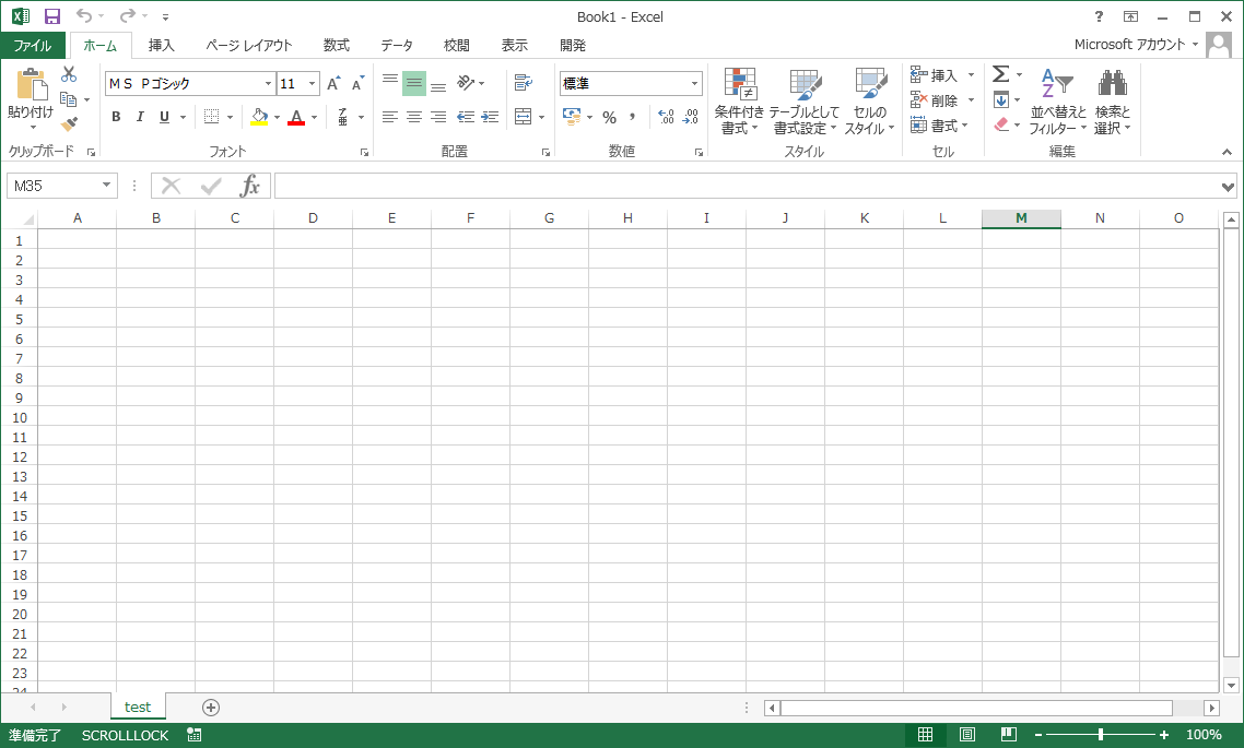 このスクリプトを実行すると、Excelが自動的に起動して新規ブックが作成されます。