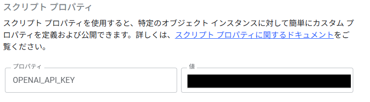 APIキー未設定エラー | スクリプトのプロパティ未登録 | 設定手順を再確認 |
