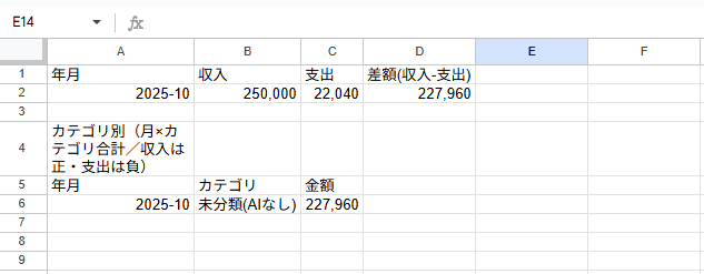 2025/10/02 | 給与振込 ○○株式会社 | 250000 |