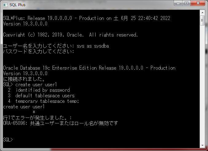 「ORA-65096:共通ユーザーまたはロール名が無効です」の対処方法