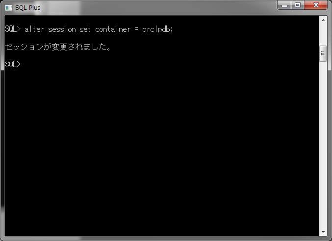 1. SQL Plusで「alter pluggable database ORCLPDB open;」コマンドを実行し、ORCLPDBをオープンします。