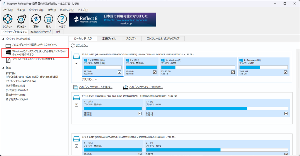 - Macrium Reflectを起動します