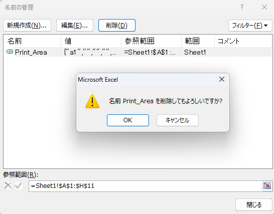 - 印刷範囲を削除すると、不要なセルまで印刷対象になる場合があります