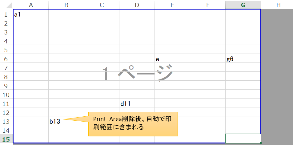 「使用されているセル範囲」を基準に印刷範囲を判断するようになります。