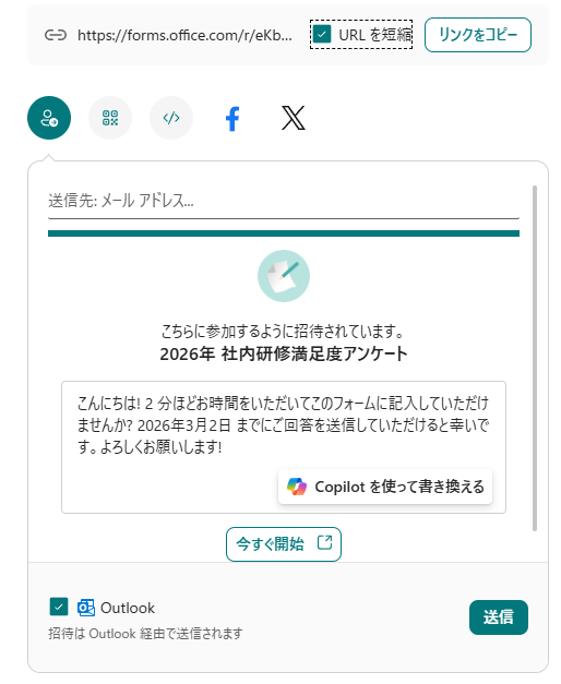 | リンク | メールやTeamsで配布可能 |