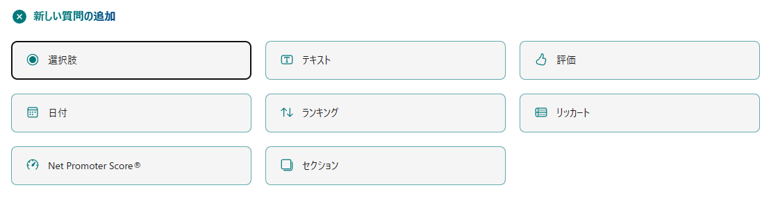「+ 新しい質問」をクリックすると、質問形式を選択できます。