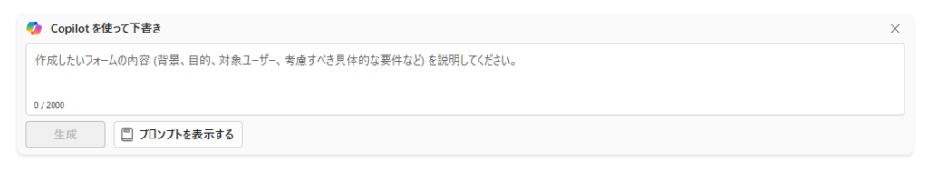 入力後、「生成」ボタンをクリックするとCopilotがフォームを自動生成してくれます。