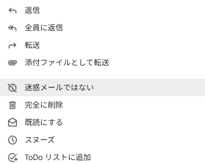 - 見つけたら「迷惑メールではない」を選択