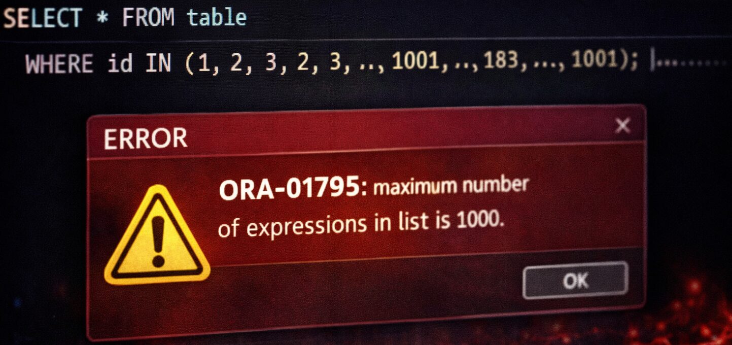 本記事では、ORA-01795 が発生する正確な原因と、現場でよく使われる対処方法を、実務目線で分かりやすく解説します。