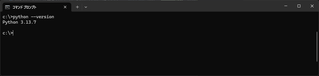 ここで Python のバージョンが表示されない場合、Python のインストールが未完了、または別の Python が参照されています。
