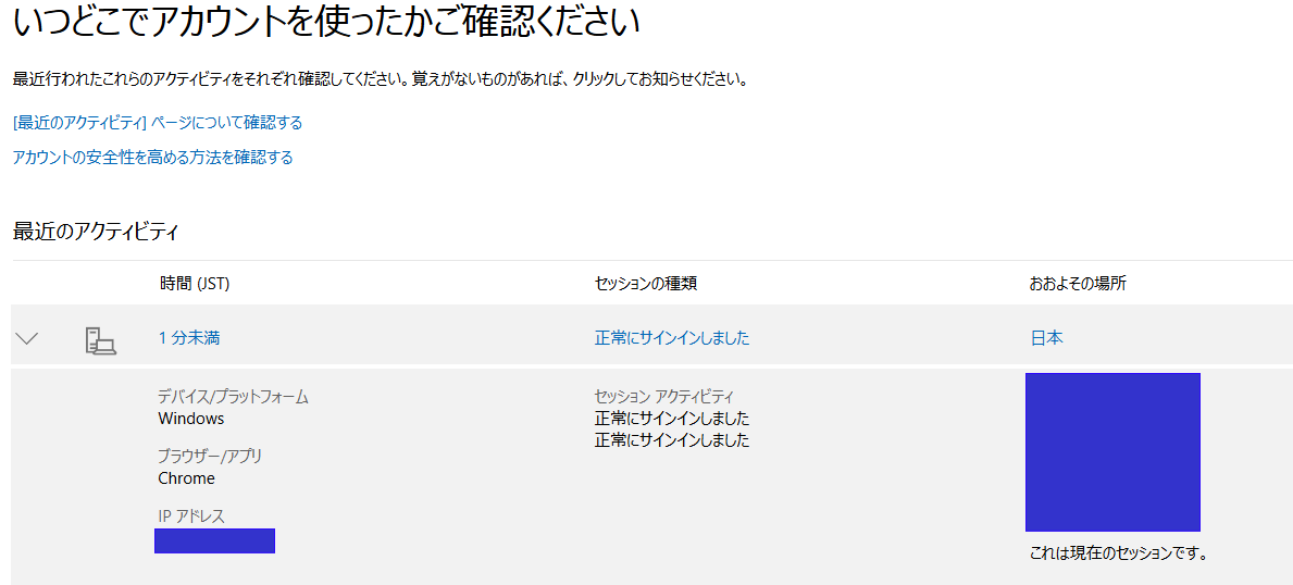 Microsoftアカウントのサインイン履歴を確認する