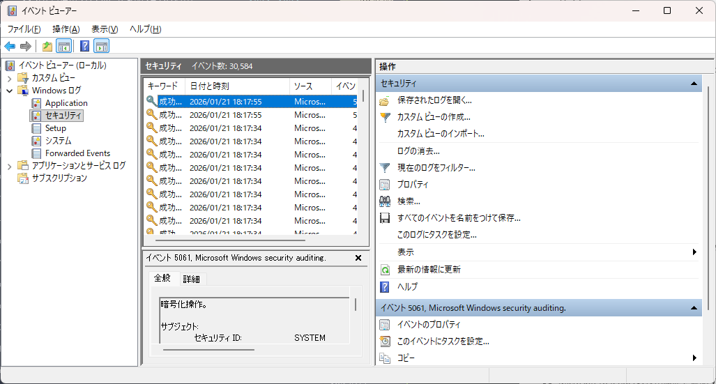 indowsのログイン履歴をイベントビューアーで確認