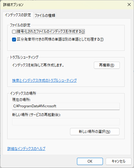 - 「詳細インデックス オプション」