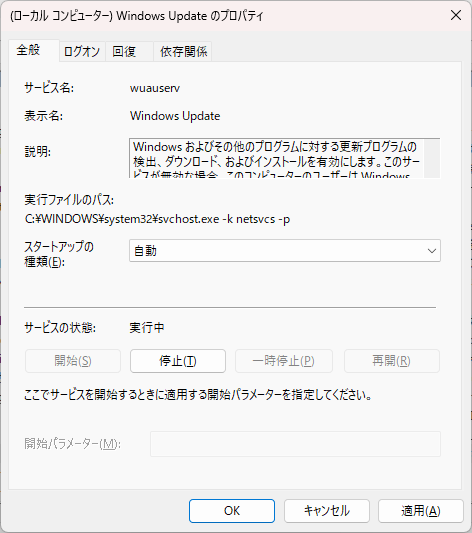 このサービスが停止していると、Windows Update が正常に動作しません。