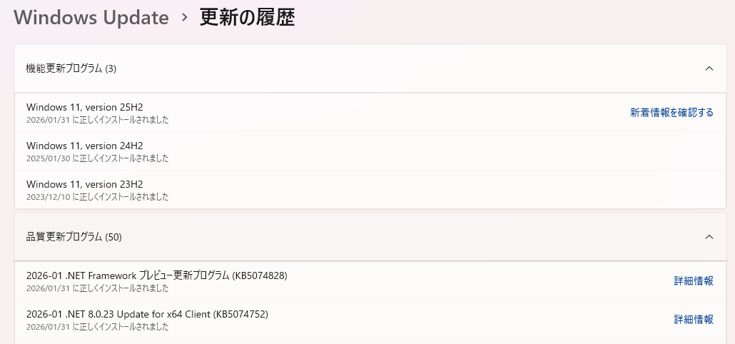 Windows Updateの履歴とは、これまでインストールされた更新プログラムの記録です。セキュリティ更新、品質更新、ドライバー更新などが一覧で管理されています。