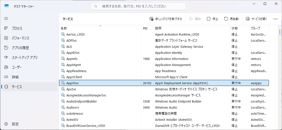 AppXSVC が実行中かどうかを確認します。