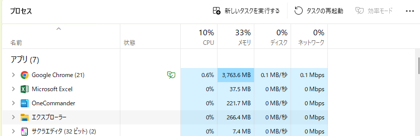 この場合、エクスプローラーを再起動するだけで改善することがあります。