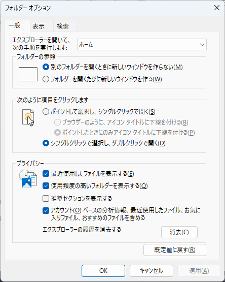 - 「一般」タブを開く