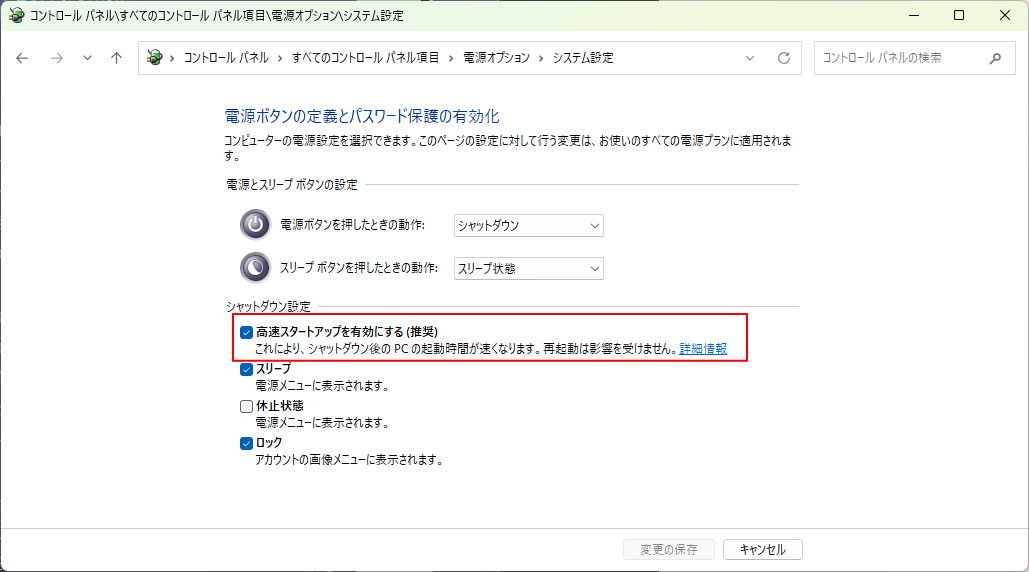 高速スタートアップを無効にする