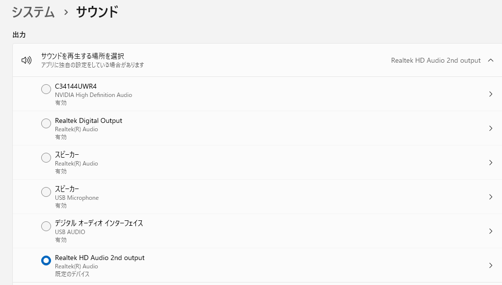 出力デバイスの選択ミススピーカーが既定の再生デバイスのままになっている
