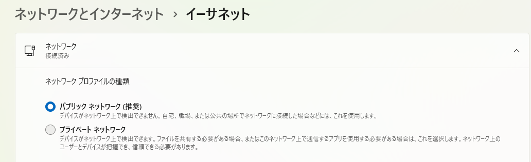 Wi-Fiの場合は、正しいSSIDに接続されているかを確認します。一度「切断」してから再接続すると直ることがあります。有線LANの場合は「ネットワークに接続済み」と表示されているか確認します。