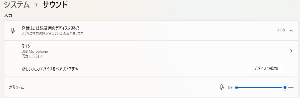「選択しているマイクの入力デバイス」