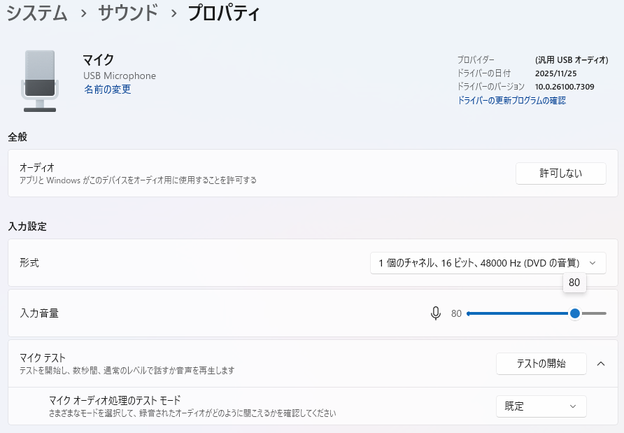 特に USB マイクや外付けヘッドセットを使用している場合、