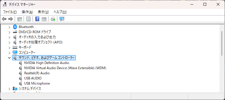 - 「サウンド、ビデオ、およびゲームコントローラー」を展開
