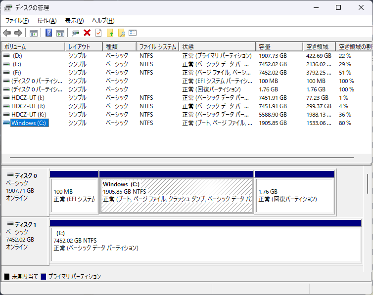 | ディスク未割り当て | エクスプローラーに表示されない | ディスクの管理で割り当て |