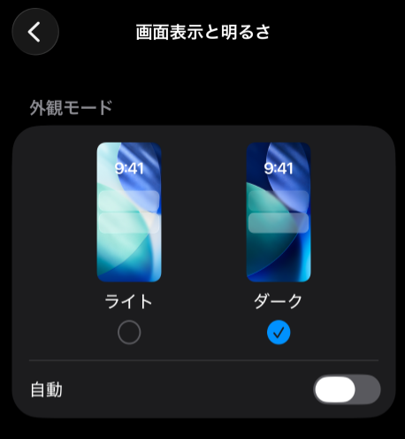 | 端末の自動切り替え設定 | 時間帯によってライトモードに戻ることがある |