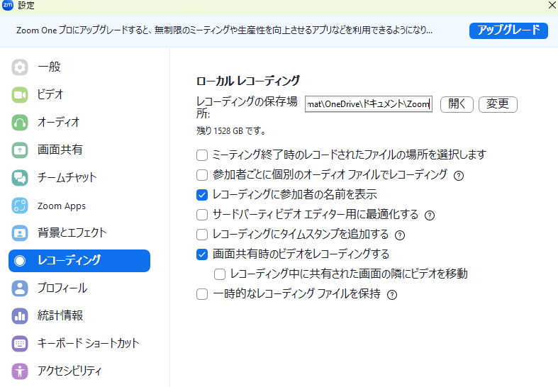 ローカル録画の保存先は、初期設定では「ドキュメント」フォルダ内の「Zoom」フォルダです。ただし、設定変更により保存先が変更されている場合があります。